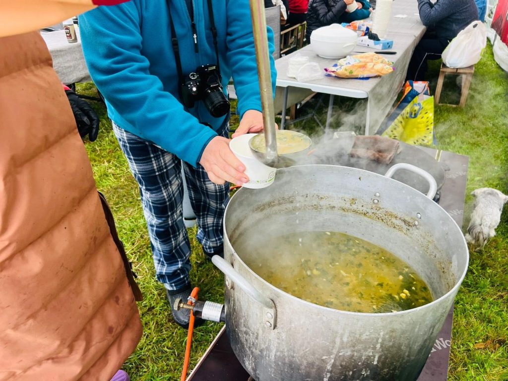 - Saturday Lunch: Instead of standard camp food, we bet on a “life-saving” chicken broth served with crispy garlic baguettes. Those who stayed up late by the fire the night before definitely appreciated the gesture.