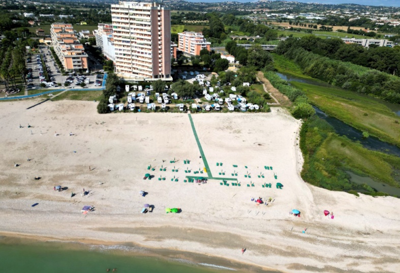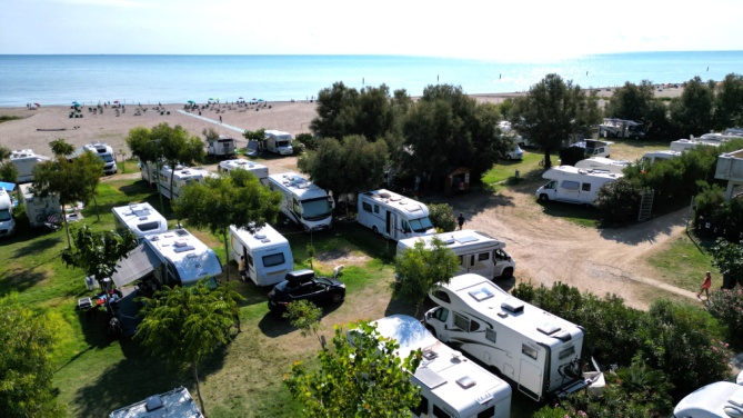 Стоянка расположена в городке под Анконой, прямо на берегу моря. Это считается именно стоянкой для кемперов, а не кемпингом, хотя условия здесь вполне себе кемпинговые. Кроме минимальных удобств (как то: душ, туалет, электроподключение, слив-залив воды), здесь есть и барчик, и утром свежие овощи-фрукты привозят, выпечку. Но главный плюс этого места – его местоположение прямо на берегу, на пляже. Здесь можно и больше, чем на одну ночь застрять!